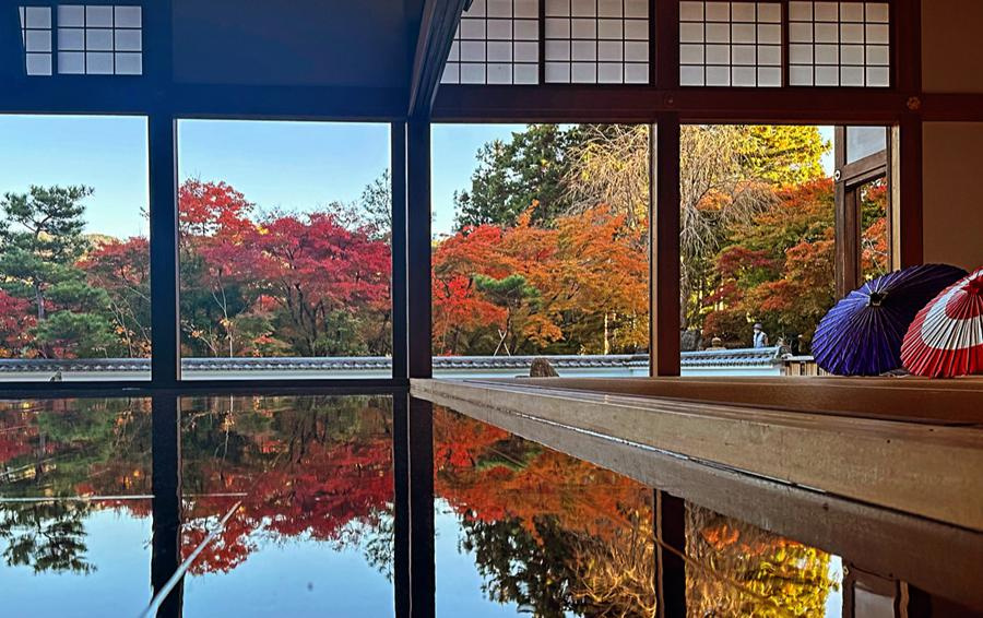これは水鏡ではなくて、漆塗りの床に映り込んでいるんです!!