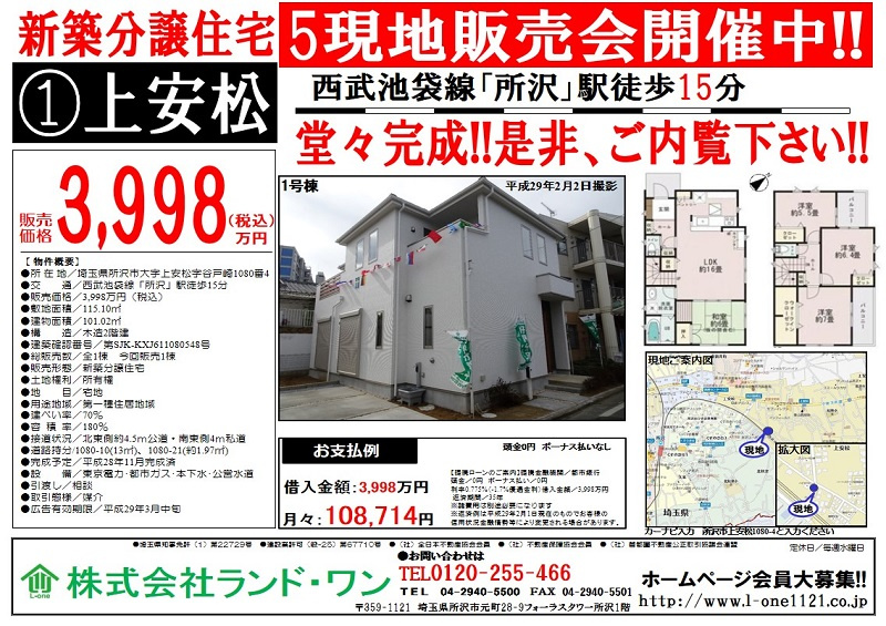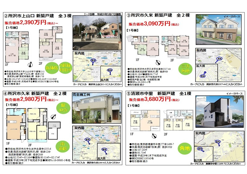 今週は、所沢市内で4現地と清瀬市で1現地、現地販売会を開催します。